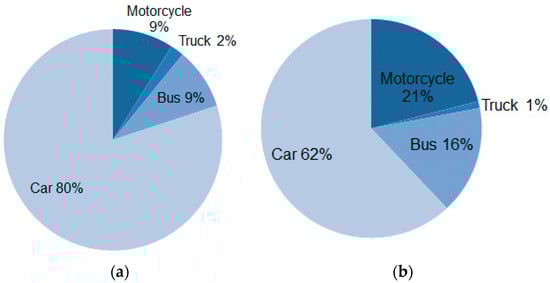 The traffic volume is produced through modeling the traffic demand with a four-step model and provides by the Traffic and Transportation Department of Isfahan municipality. This four-step model determines the demand on roadways. The four steps consist of trip generation, trip distribution, mode choice, and trip assignment. In the first step, the socioeconomic data are used to determine trip frequency. The trip ends, trip productions and trip attractions are determined in a separate manner. In the second step, the produced trips are distributed based on several parameters including the number of trip productions, the number of trip attractions, and travel time and/or cost. In the third step, the modes of trips are determined. Finally, the trips from mode choice are assigned to mode-specific networks [72]. These four steps represent the basic building blocks of Isfahan municipality transportation model which is implemented in Emme 4 environment. The outputs of this model consist of the traffic volume and speed of each vehicle type for main road networks. The emission level caused by each road link is computed through Equation (9).