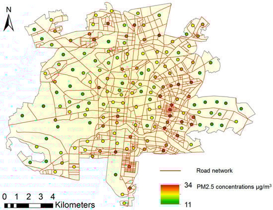 This proposed model is applied at the same locations to estimate the traffic related PM2.5 concentration. These two datasets have statistically significant correlation (r = 0.76) (Figure 10).