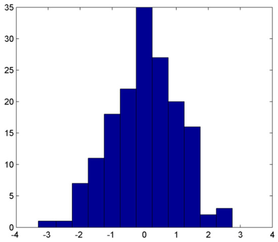 The histogram of the difference between PM2.5 concentrations obtained from this proposed model and the dispersion model is shown in Figure 8. Where, the distribution of this difference is near normal. This difference is random and independent from station location. Here, there exists no systematic error in estimating the concentrations. By applying more receptors placed in various urban contexts in this model, it is less sensitive to inputs and yields more certain predetermined accuracy.