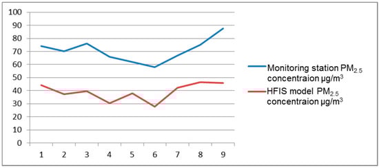 PM2.5 concentrations from HFIS vs. monitoring stations.