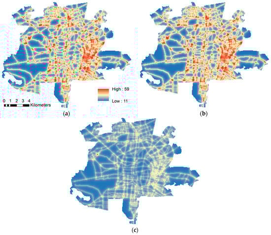 Concentration-response coefficients and baseline health outcome rates applied in modeling are tabulated in Table 4. In this article, the coefficients are obtained from meta-analysis studies instead of local studies as recommended by WHO. The level of exposure is evaluated by overlaying the concentration map and census block map. This method has been used in most prior studies to assess health outcomes as an accepted method [9,64]; because, on the one hand, the required data for modeling the exposure of total population are only available in this form, and, on the other hand, this method does not have considerable influence on exposure estimates, at the city scale [76].