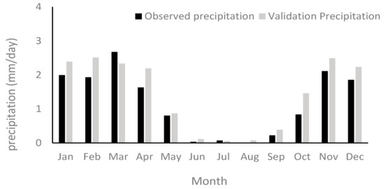 Validation of the monthly average precipitation at the Kermanshah synoptic station.