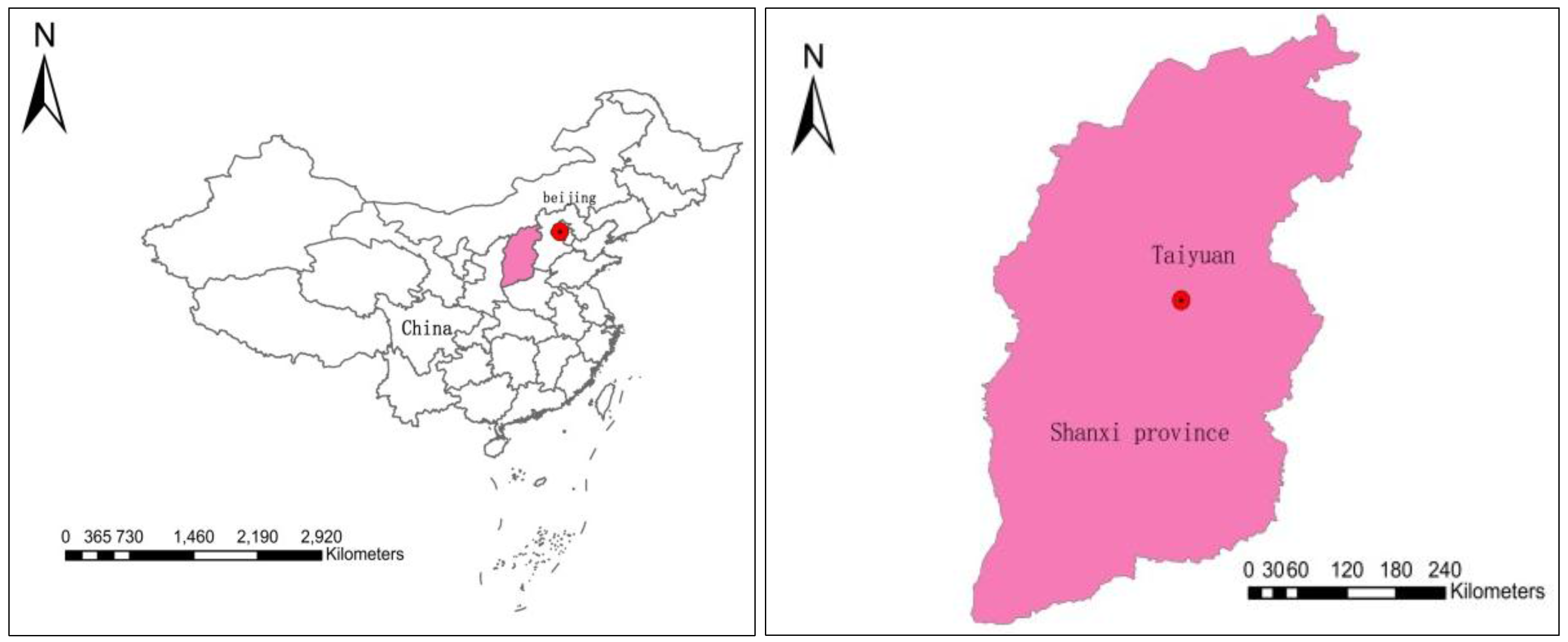 - Taiyuan Bureau of Statistics. Taiyuan Bureau of Statistics, Taiyuan Statistics Yearbook, 2007–2015; China Statistics Press: Beijing, China, 2007–2015.