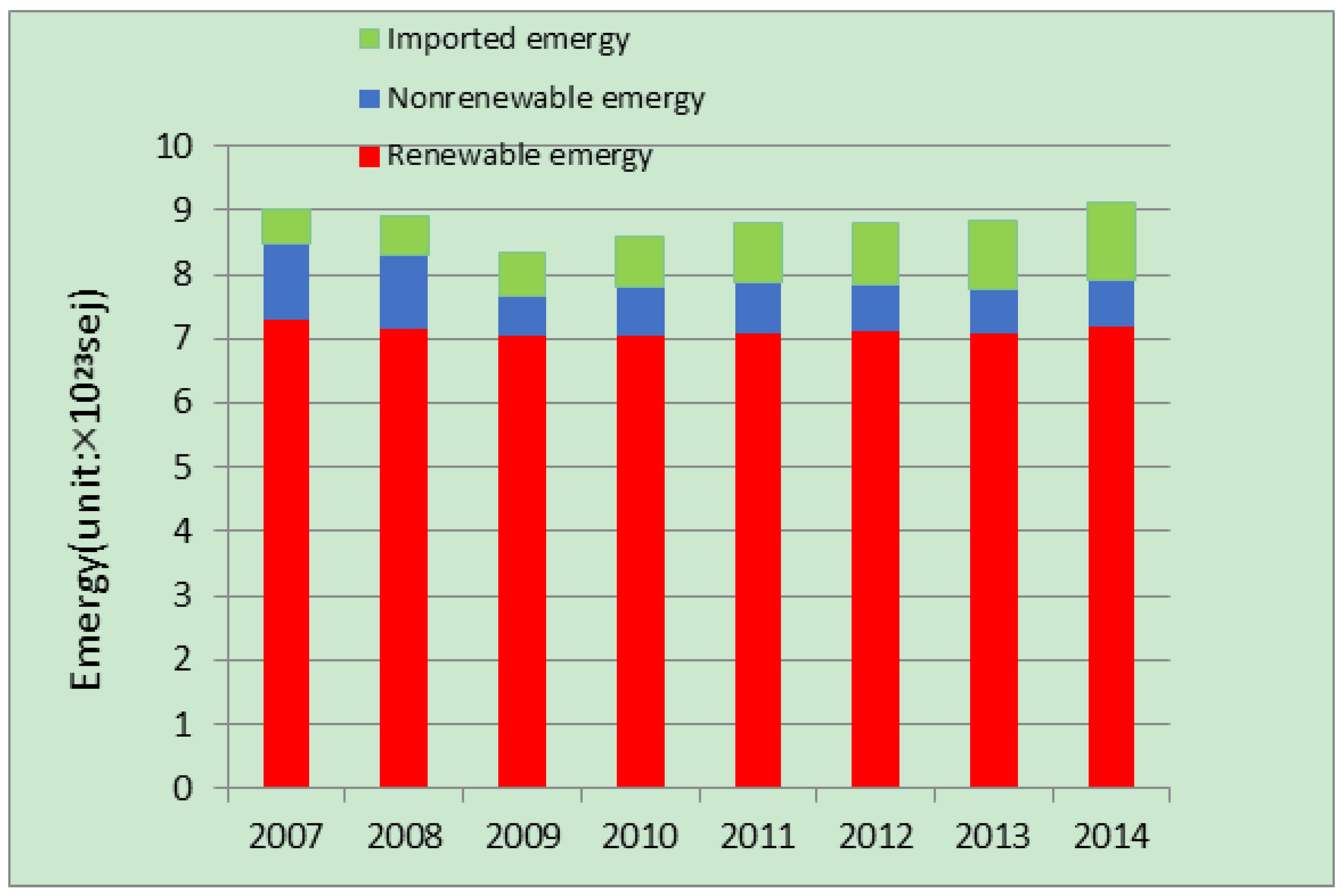 4.1. Emergy Flows of the City from 2007 to 2014