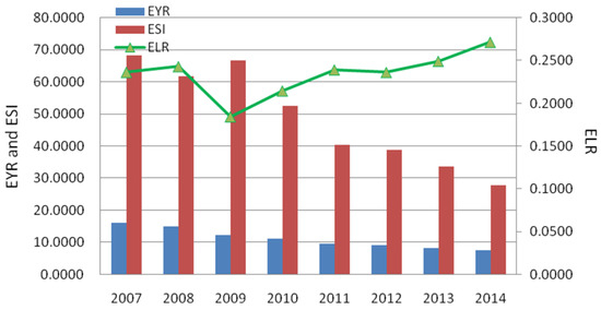 | Emergy sustainable index (ESI) | 1 | EYR/ELR | The sustainability capacity of the local system |