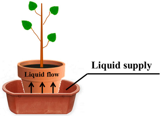 The soil samples used for both the pot and the pilot-scale studies were collected from the upland field located on the experimental farm of Gyeongnam National University of Science and Technology (GNTECH), South Korea. The collected soil characteristics were as follows: pH, 7.61; EC, 0.1 dS·m−1; total nitrogen (N), 1.0 g·kg−1; total phosphorus (P), 0.9 g·kg−1. Liquid manure was made of pig manure by aeration for 40 days.