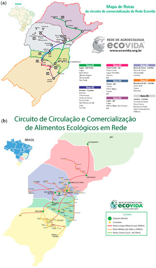 - Darolt, M.; Grando, G.; Almeida, F. Cartilha: Circuito Sul de Circulação e Comercialização de Alimentos Ecológicos; Rede Ecovida de Agroecologia: Curitiba, Brazil, 2016. [Google Scholar]