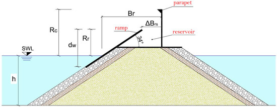 The overtopping at the rear of the structure for traditional breakwater has been estimated with the formula proposed by [54] using parameters proposed by [55]. Once the crown wall crest level is known, Pedersen formulae [56] have been applied in order to estimate wave loadings acting on the structure. For each OBREC, optimal geometry investigated all study sites; the overtopping flow rate at the rear side and the wave loading acting on the device have been estimated using equations proposed by [9]. These formulas have been derived after two complementary model test campaigns were carried out in 2012 and 2014 at the Department of Civil Engineering at the Aalborg University (AAU) in Denmark.