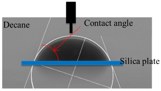 Experimental setup for contact angle measurement on silica surface submerged in decane.