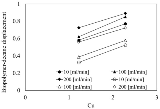 Biopolymer solution-decane displacement at the change in the coefficient of uniformity Cu.