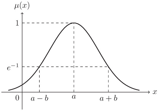 Referring to Equation (8), we can deduce that the daily overall AQI is a Gaussian fuzzy number, as well, that follows , in which is its expectation and is the standard deviation. At the same time, we can get the membership function of intraday AQI directly, whose corresponding graph can be also portrayed.