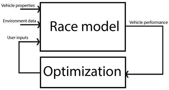 As stated in Section 2, a heuristic optimization approach is selected for defining the race strategy. The main purpose is to find the best velocity in order to minimize the solar car racing time. To have an accurate race model, the optimization step is implemented as depicted in Figure 2. Different velocity vectors are produced by the optimization algorithm and evaluated in the race model.