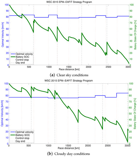 - Shimizu, Y.; Komatsu, Y.; Torii, M.; Takamuro, M. Solar car cruising strategy and its supporting system. JSAE Rev. 1998, 19, 143–149. [Google Scholar] [CrossRef]