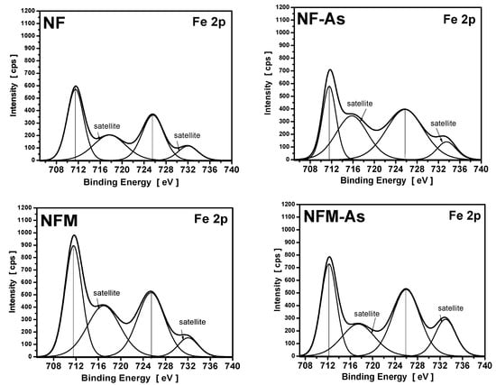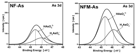 - Zhang, S.; Li, X.-Y.; Chen, J.P. An XPS study for mechanisms of arsenate adsorption onto a magnetite-doped activated carbon fiber. J. Colloid Interface Sci. 2010, 343, 232–238. [Google Scholar] [CrossRef] [PubMed]
