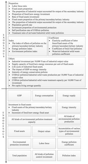 A boundary is used to determine the endogenous and exogenous variables of the model, which not only helps the model better reflect the problems to be studied, thereby eliminating some irrelevant variables, but also helps readers understand the model more clearly. Figure 6 summarizes the major endogenous and exogenous variables in the models.
