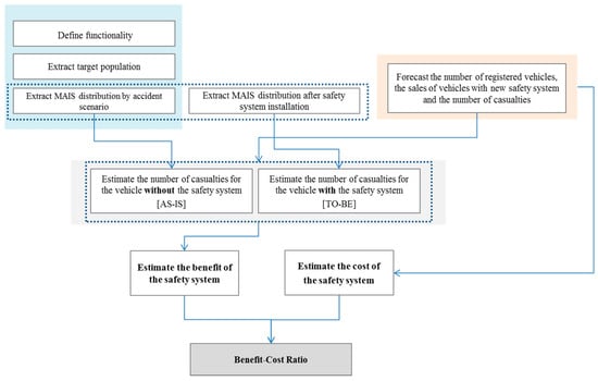 In addition, Robinson et al. [13] conducted a CBA on an advanced emergency braking system (AEBS) and a lane-departure warning (LDW) system with data from the STATS 19 database. Their study suggested Benefit–Cost Ratio (BCR) values with regard to the cost and performance levels of these systems.