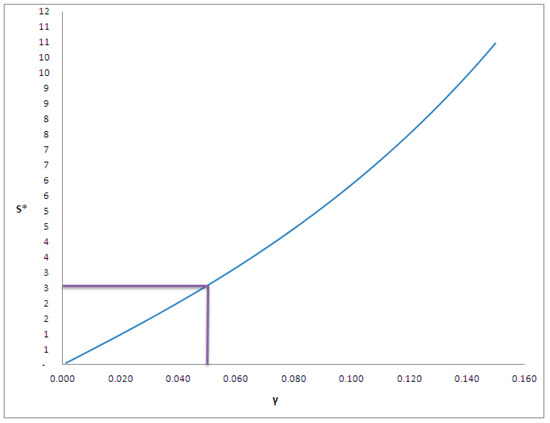 Analyzing Figure 2, it is possible to notice how, when γ constantly increases, S* rises more than in proportion. As previously mentioned, when γ approaches 0, S* also tends to 0; instead, when γ approaches 1, S* tends asymptotically to +:.