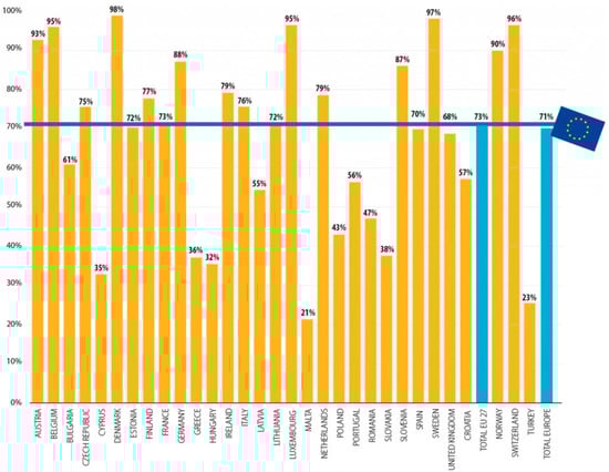 Collection for the recycling rates of containers glass in Europe, 2013 [43].