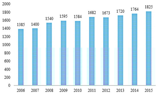 Figure 5 underlines the trend of separate collection of glass packaging (kt), which increased by about 32% from 2006 to 2015. In Italy, the separate collection of glass packaging waste is mainly managed (90%) by the CoReVe Consortium, and the remaining part is managed independently. The responsibility for the management of packaging waste in Italy is generally transferred by the industry to CONAI, the National Packaging Consortium, a private non-profit organization established in 1997 with the aim of promoting the separate collection, sorting, recovery, and recycling of packaging waste. For the recovery operations of different materials, CONAI co-ordinates the activities of some Material Consortia, among which is CoReVe [52].