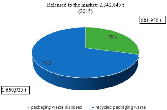 Waste glass packaging recycled and disposed in 2015 (%) [53].