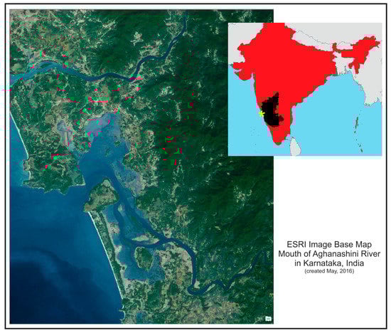 - Chandran, M.; Mesta, P.; Boominathan, M.; Rao, G.; Vishnu, D.; Ramachandra, T. Aghanashini Estuary in Kumta Taluk, Uttara Kannada—Biological Heritage Site; ENVIS Technical Report No. 35; Indian Institute of Science Centre for Ecological Sciences: Bangalore, India, 2012. [Google Scholar]