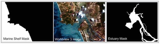We perform a land-cover classification using a mixed method classification approach, which involved a maximum likelihood classification workflow with selected training sites (Figure 2). There was significant spectral variation of the ocean and estuary, which we masked in total as either “marine shelf” or “estuary” (Figure 3). We accomplished this using a digitized boundary created with expert local knowledge and the 31 cm resolution panchromatic WorldView-3 image. We used the same approach for the Landsat 8 imagery.