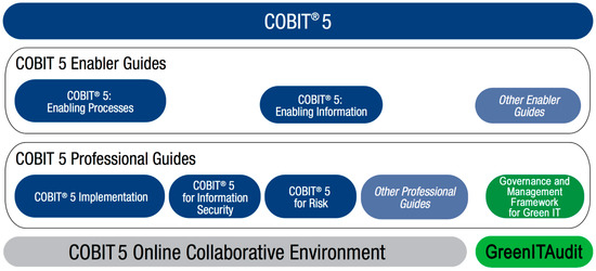 COBIT 5 has a set of guidelines and best practices for the governance and management of different areas of IT (such as security, risks, etc.), as shown in Figure 1, by which the basis for conducting audits in these areas are established. However, it should be noted that COBIT 5 does not have any specific guidelines for Green IT or sustainability.