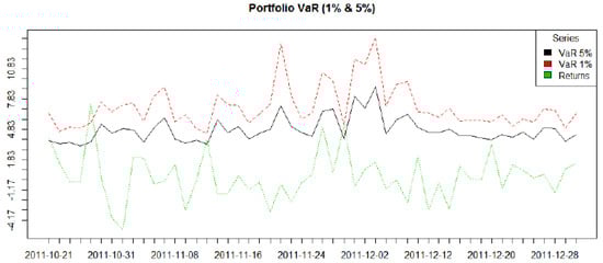 Table 13 below gives the results from Unconditional Coverage (Kupiec) and Conditional Coverage (Christoffersen) (Christoffersen [38] and Christoffersen, Hahn & Inoue, 2001 [39]) which are based on the number of VaR violations compared to the actual portfolio returns. According to the results in the table both the tests accept both 1% and 5% VaR models for the forecasting period.