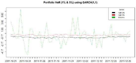 Portfolio Value-at-Risk analysis based on application of a GARCH(1,1) model.