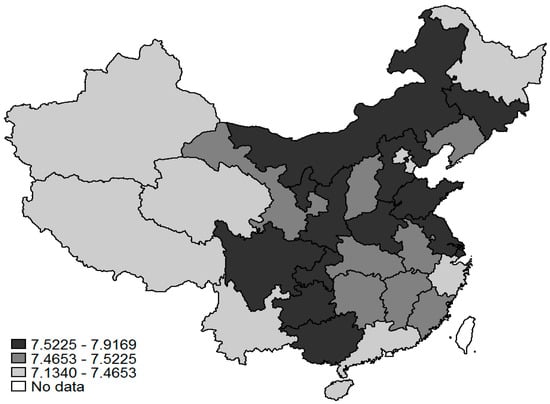 In addition, this research is interested in TFP distribution across different geographical regions. As shown in Figure 2, the average TFP level of Chinese R&D performers differs by provinces and municipalities, over research years 2005–2007. As expected, R&D performers located in Eastern China (e.g., Hebei, Shandong, Jiangsu, and Shanghai) are more productive. These firms have a higher TFP level benefiting from the geographical advantage, sufficient marketization and higher level of economic development. Moreover, many R&D performers located in Western China (e.g., Shanxi, Sichuan, Guizhou, and Chongqing) also exert TFP advantage. This indicates the implementation and successfulness of the government’s preferential policies, such as the Western Development Strategy.