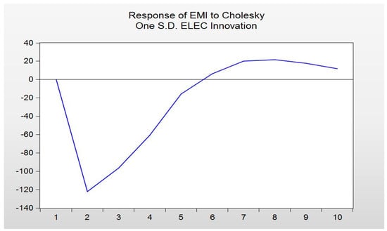 In addition to the VECM analysis, we will show the meaningful methods used to analyze our data. Impulse responses are required to understand results in the short term. The impulse response function is a moving average model which shows how the variables in the model respond to shocks over time, given the unexpected economic impacts. There is also the advantage that it is easy to check conveniently through the graph. Finally, it is straightforward to grasp causal relationships between the variables and to analyze the influence of variables [,,,].