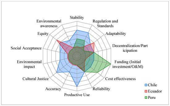 In recent decades, Chile, Ecuador, and Peru have significantly improved their rural electrification rates (reaching 97.8% in Chile, 92.3% in Ecuador, and 63% in Peru) [3,4]. Rural electrification efforts included the deployments of off-grid PV solutions in remote areas such as the Ecuadorian and Peruvian Amazon basin [4,5], as well as in isolated Chilean peripheral locations [6]. Communities of these areas are characterized by low energy demand, low income, high dispersion, and difficult accessibility (see e.g., [7,8]).
