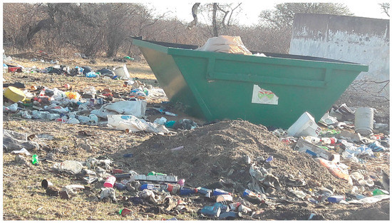 Very few scientific investigations [29] have been directed to the challenges of rural solid waste management and its minimization, although nearly 40% of South Africa’s inhabitants still live in rural areas. Despite major historical impediments in the provision of effective municipal solid waste management in many areas of South Africa including large metropolitan municipalities, deep rural areas and many jurisdictions under traditional and tribal authorities face enormous challenges. Payments of municipal waste services by local inhabitants remain limited because most indigent households in these areas cannot afford such services due to high unemployment levels and rampant poverty [30]. Sources of income and livelihoods in such rural areas are mostly scarce and are derived mostly from government social grants and pensions for the elderly, cash remittances from migrant workers, farm jobs, as well as subsistence agriculture, especially the rearing of livestock. It is for this reason that, in 2001, a national policy on free basic services was introduced specifically to provide a range of services to vulnerable households, including the poorest communities in rural areas [30]. The national policy on basic refuse removal services also promote measures intended to educate and raise awareness levels within all municipalities regarding the proper handling of domestic solid waste as well as the need to minimize the generation of such waste through its recovery and recycling before being disposed of in landfill sites. For example, the collection rates of recyclable wastes in rural areas is expected to be at least once a month [30], even though, in most instances, these areas are often without the necessary infrastructure and logistical support.