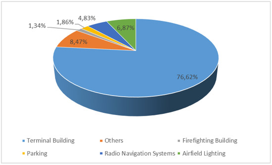 In general, when examining the energy consumption at airports, terminal buildings have the largest share, as seen in Figure 1 [7].