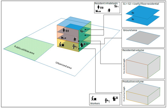 The data set refers to the individual urban areas within the DSDs. It is a set of data that can only be implemented at a town level; however, in Italy, municipalities that can provide such detailed information on single urbanized soils are very few. The most common datum is that on “census sections”, which is normally used to manage political and administrative elections.