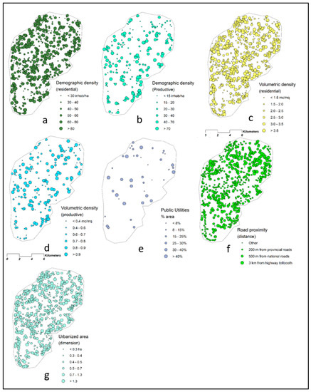 The parameters taken into account to measure the urban ranking of each urbanized soil are indicated in Table 3.