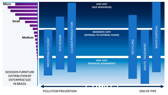 - Schneider, V.E.; Hillig, É.; Pavoni, E.T.; Rizzon, M.R.; Bertotto, L.A. Environmental management in the furniture industry—Case of study in the Bento Gonçalves municipality. In Proceedings of the XXIII Encontro Nacional de Engenharia de Produção (ENEGEP), Ouro Preto, Brasil, 21–24 October 2003. (In Portuguese). [Google Scholar]