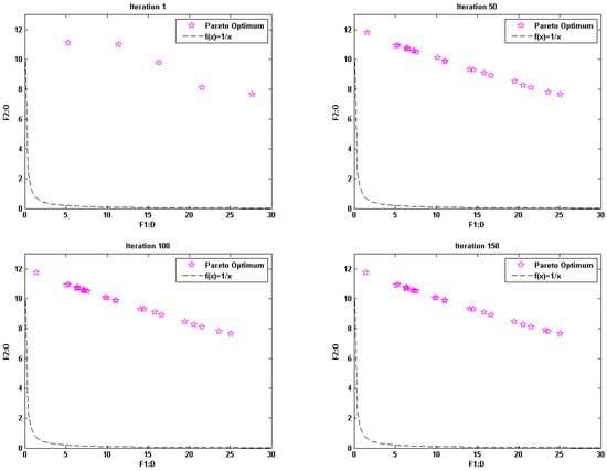 Figure 7 describes the iterative progress of the Pareto optimal solutions.