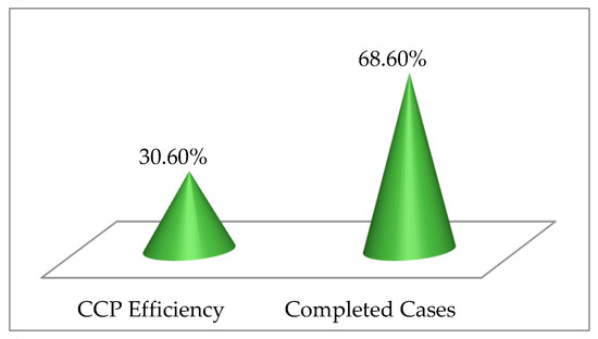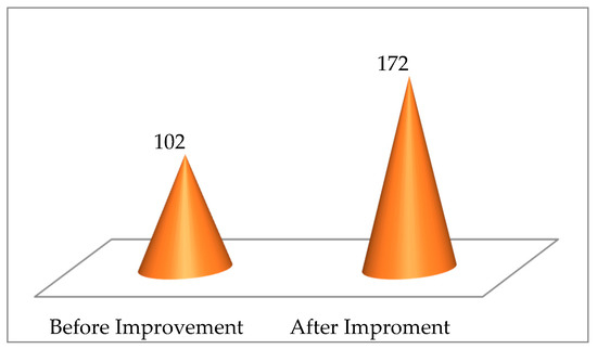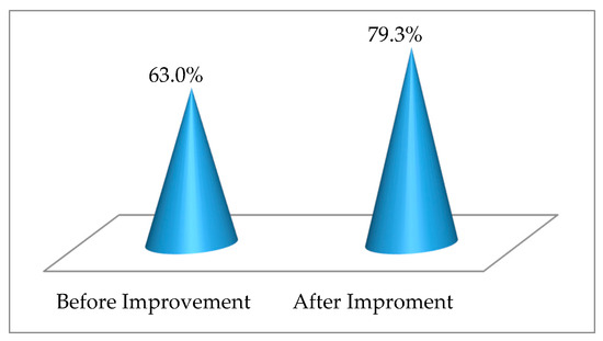Once the causes of the problems were identified using the TRIZ hierarchy analysis method, the TRIZ solution was incorporated into the NMRC-AMU. The CCP efficiency is defined as completed requests divided by total requests. Before improvement, total 6925 requests for coordination and procurement were submitted. Of these requests, 4366 requests had been completed (with a total of 102 cases), and the CCP efficiency is 63.0%. After improvement, a total of 4529 items were submitted and 3592 executed items were completed (with a total of 172 cases), and the CCP efficiency is 79.3%. Please check Figure 5, Figure 6 and Figure 7. The improvement percentage of the CCP efficiency and completed cases are 30.6% and 68.6%, respectively.