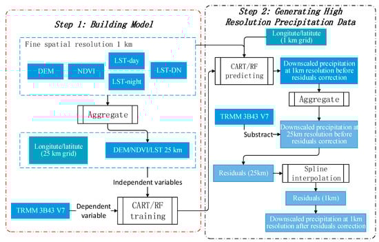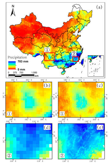 - Xu, S.; Wu, C.; Wang, L.; Gonsamo, A.; Shen, Y.; Niu, Z. A new satellite-based monthly precipitation downscaling algorithm with non-stationary relationship between precipitation and land surface characteristics. Remote Sens. Environ. 2015, 162, 119–140. [Google Scholar] [CrossRef]
