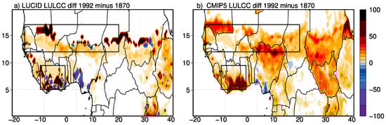 - Boone, A.A.; Xue, Y.; De Sales, F.; Comer, R.E.; Hagos, S.; Mahanama, S.; Schiro, K.; Song, G.; Wang, G.; Li, S.; et al. The regional impact of Land-Use Land-cover Change (LULCC) over West Africa from an ensemble of global climate models under the auspices of the WAMME2 project. Clim. Dyn. 2016, 47, 3547–3573. [Google Scholar] [CrossRef]