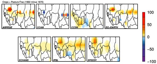2.3. Changes in Land Cover Fraction between 1870 and 1992