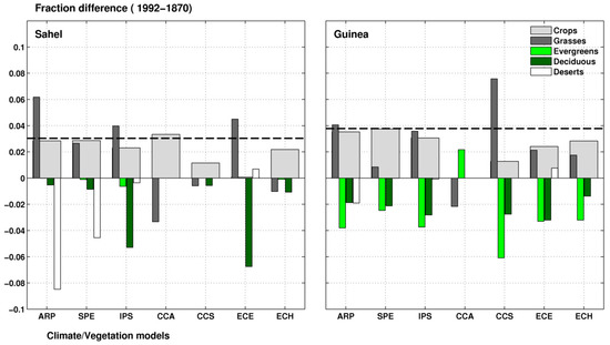 Sy, S.; Noblet-Ducoudré, N.D.; Quesada, B.; Sy, I.; Dieye, A.M.; Gaye, A.T.; Sultan, B. Land-Surface Characteristics and Climate in West Africa: Models’ Biases and Impacts of Historical Anthropogenically-Induced Deforestation. Sustainability 2017, 9, 1917. https://doi.org/10.3390/su9101917