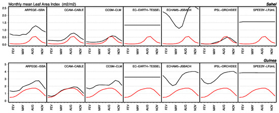 - LAI needs to be thoroughly evaluated in all land surface models, especially when they are coupled to their host climate model. The importance of evaluation in a coupled mode has already been stressed by e.g., Boisier and Quesada et al. [21,79] for the temperate latitudes, and this is of crucial importance in West Africa as both precipitation and surface air temperature are correlated to the greenness index of the land surface;