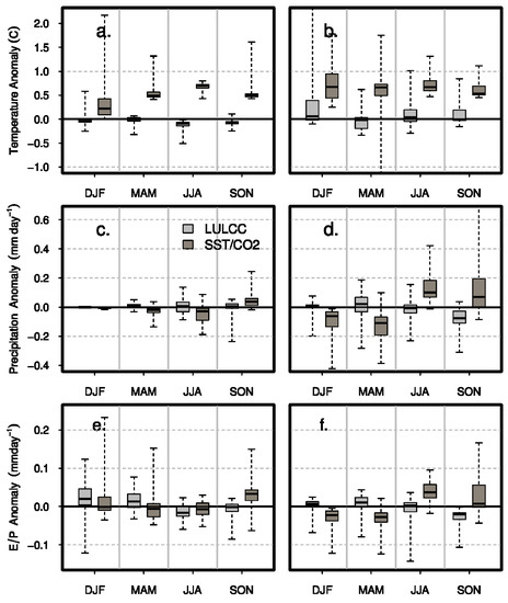 2.4. Separating the Respective Impacts of Land-Cover and Greenhouse Gas Changes