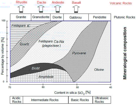 3.1. Mineralogical and Petrographical Characterization of Igneous Rocks Analyzed