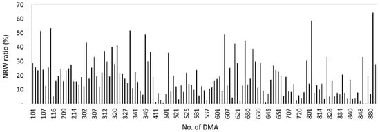 Observed non-revenue water (NRW) ratio in Incheon’s DMAs.