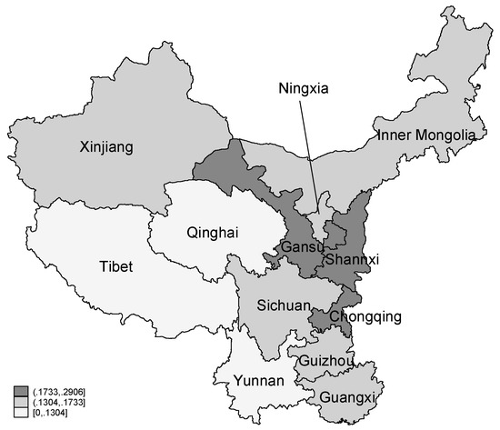 Economic inequality has become an increasingly prominent global issue for economic development, especially in underdeveloped regions or special regions of developing countries [1,2], for example, the western regions of China. A Western Development Strategy was proposed in 2000 by Chinese government aiming to overcome the economic backwardness and better support the economic development of western regions [3,4]. Although this policy has promoted the regional economic development to a certain extent, the economic development difference in the west regions has not stopped enlarging. This creates the phenomenon of “the strong get stronger and the weak get weaker”. The current economic development within western China remains significantly unbalanced, and, to some degree, it is becoming even worse than before. For example, in the underdeveloped areas such as Tibet, Gansu and other provinces, people are suffering a low standard of living, and this seriously affects the social harmony and stability, blocks the process of regional modernization, and influences the efficiency of regional economic development. All of these problems have greatly affected the sustainable and healthy development of Chinese economy [5]. The key of alleviating current situation is to identify the top influencing factors that affects regional economic difference in western China. Currently, regional economic difference in China is a popular research topic [6,7,8,9], and many studies [10,11,12,13] have been reported. For example, Peng [10] analyzed the spatial–temporal evolution characteristics of three regional economic differences of eastern and western China, and other regions of China have been studied similarly by other researchers [11,12,13]. Yang [12] used Henan province as an example to explore the influencing factors of regional economic growth difference, and concluded that location condition, capital condition, and industrial structure are the important factors influencing regional economic growth difference. Liu et al. [13] analyzed the panel data from 1987 to 2017 and verified the transportation infrastructure had a significant positive effect on Chinese economic growth. However, little research has been done to analyze the economic difference of western China with the latest panel data, and to recognize the top impact factors not only at the theoretical level but also at the policy implementation level. Thus, there is a need of identifying the influencing factors of regional economic development in western China, such as whether the Western Development Strategy and industrial isomorphism are the significant influencing factors, whether the western region still relies on fixed asset investment to drive economic development or not, etc. The research objectives of this paper are to realize this need, analyze the important influencing factors of regional economic development using the proposed spatial–temporal model with the latest panel data [6], and provide corresponding suggestions to sustain the economic development in western China.