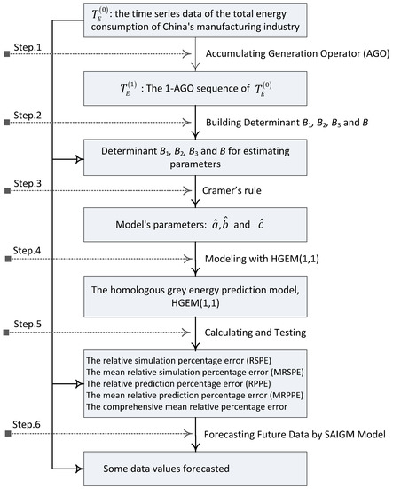 (I) A new grey prediction model named homologous grey energy prediction model, HGEM(1,1) is proposed, which solves the ‘misplaced replacement’ issue of the classical GM(1,1) model; (II) The HGEM(1,1) model is used to simulate and forecast the total energy consumption of China’s energy manufacturing, and some measures are suggested to ensure the effective supply of energy in China’s manufacturing industry.