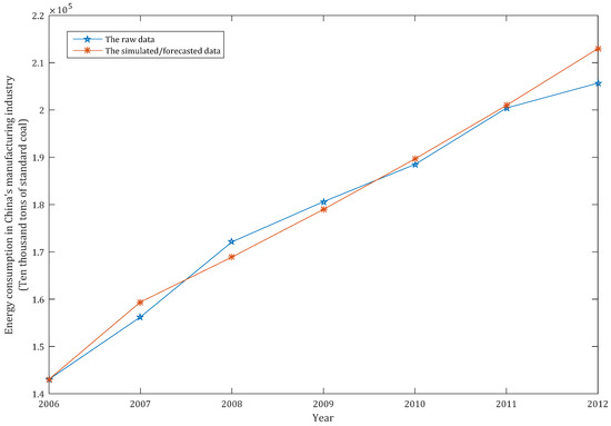 In recent years, China’s manufacturing industry has risen rapidly and has become a major manufacturing country in the world. However, the development of the manufacturing industry is mainly based on the consumption of large amounts of coal, petroleum and other non-renewable energy sources, which results in an energy shortage in China. China’s manufacturing industry consumes 54% of China’s total energy consumption. Hence, it is of great theoretical and practical significance to forecast the energy consumption situation of China’s manufacturing industry in the future. Such a forecast would be instrumental to ensuring the effective supply of energy in China’s manufacturing industry and promote the sustainable development of China’s economy. The energy consumptions of China’s manufacturing (CMEC) during 2006–2012 are as shown in Table 1, as follows.